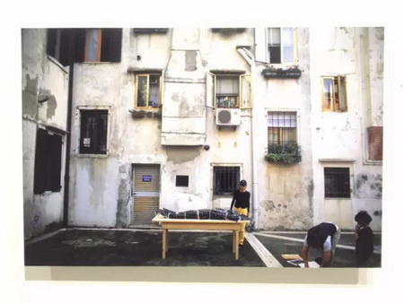 ▲杨志超 道德经 2007 意大利威尼斯 现场行为 视频 8分52秒 照片 60x90cm