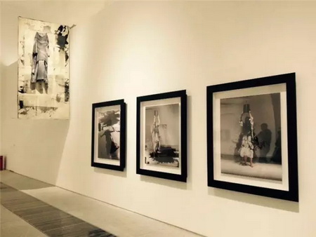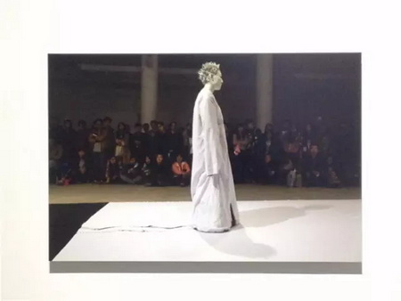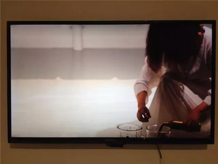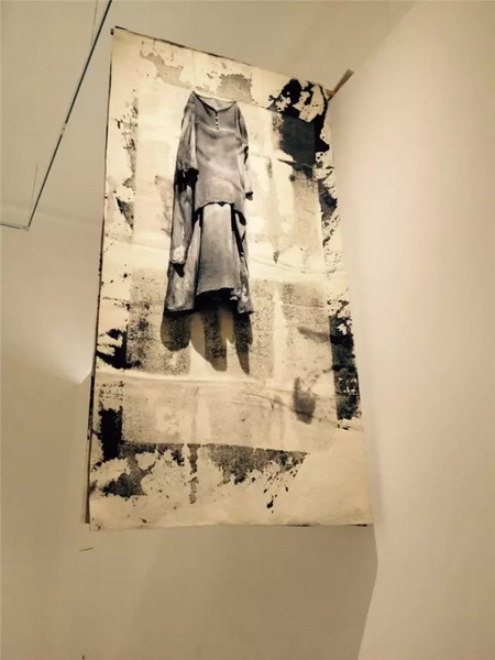 ▲肖鲁 2015 合一 瑞典歌德堡VALAND 艺术学院 (宣纸 水 墨 裙子 玻璃杯 塑料桶) 影像 3分11秒 照片 100x83cm