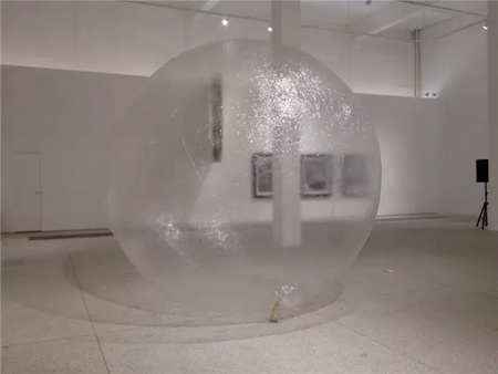 一直以来,朱冥通过其他作品“公开”展示了肉体遭受的紧张过程,这一切必须加以忍耐的过程使艺术家身体的“私人性”,在事实上的暴露和持续加剧的物质侵犯中内在化为一种超越的精神。在这次作品里,朱冥创造了一个事实和幻想并存、生活和死亡共在的领地,并最终通过一个透明、美丽,但易碎的“泡”将这一切集合起来。