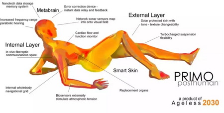 ▲ 传奇的塞浦路斯-澳大利亚表演艺术家Stelarc喜欢考虑技术如何扩展人体的能力以及我们的身体如何变得越来越过时。