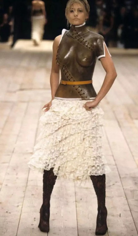 艾米·穆林斯(Aimee Mullins)主要以她作为残奥会运动员的成就而闻名,但在1999年,她与英国时装设计师Alexander McQueen合作开展了一个相当有趣的项目。穆林斯在一岁的时候,她的两条腿都被截肢在膝盖以下,摆在一对手工雕刻的木制假肢上,用固体灰烬制成,带有整体靴子。