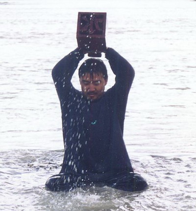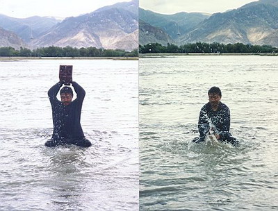 宋冬将他全家人的合影拍成录像,邀请观众站到投影墙面前与录像中的合影再次合影。他本人则在现场架起三角架,忙着为那些应邀加入他的大家庭的人们拍照片填写邮寄合影的地址。在这样的工作中我们看到了宋冬将中国式的家庭温情融入录像艺术的尝试,这一倾向后来发展成宋冬的主要风格之一。在九八年底长春的《 0431-中国录像艺术展》上,宋冬第一次展出了《父子》,他把其父亲讲述自己简历的投影投在自己脸上,他自己则也讲述着自己的简历。父子形象的重叠与相似,带给人一种与遗传与轮回相关的感慨性的联想。这一作品在1998年底北京太庙由冷林策划的《是我:九十年代艺术的一个侧面》中演变成另一形式,父与子单独讲述简历的投影分别被打在左右两根柱子上,中间的柱子则是父子形象重叠的幻灯投影。巨大的圆柱和太庙作为祭祖场所的独特语境,使这一作品获得了空前的力度。