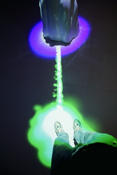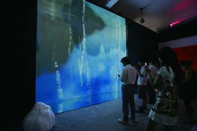 手机传讯里的私密话语,裸白窜流于公共时空里,反应了手机世代中公私领域界线的模糊。这个现象在中国似乎特别的明显,作品直接邀请观众现场发送信息,邀请观众通过表白进入潜意识交会的视觉奇观之中。