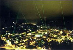 光束被反射于一个或好几个镜子,它们被分碎于由脉动规则赋予生气的空间内。这个光束是依据一个活动反射器的加速而增速的,并刻画出一个变换的循环—墙、地、天花板。可操纵的镜子,各种光的响板被安纹,它们允许观众直接的介入,观众可在视力能恢复的光束旁操作。