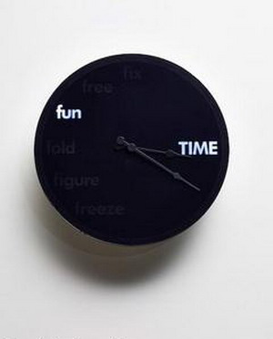 在Raqs媒体小组(Raqs Media Collective)的近期展览“对历史首稿的修正”(CORRECTIONS TO THE FIRST DRAFT OF HISTORY)中,有一块全身漆黑的钟表在画廊中展出,这件作品名为《黄道》(The Ecliptic,2014)。在它的表盘上,通常用作标示时间的数字被去除,取而代之的是占据着表盘一侧的“TIME(时间)”一词,和另一侧交替闪现出的“FREE(释放)、FOLD(折叠)、FIGURE(推测)、FUN(娱乐)、FIX(修理)、FREEZE(凝固)”。这些词语的交替带出了节奏与重复循环之感,同时也让我们联想到另一个以字母“F”为开头的单词——“future(未来)”。在“TIME(时间)”的支配下,这些F开头的动词们表现得懒散迟钝,逐渐转化为形容词,就好像“未来”将要看到当我们试图握住那已隐去的声音和已黯淡下的光时所付出的注定的徒劳。
