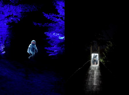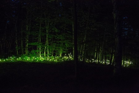 这个半永久性的装置在10月11日前将一直开放,多种如同超自然力量的艺术媒介在此共生,沿着一条令人惊奇的小路铺展开来。参观者一旦踏进魔法森林,就面临着一条1500米长的幽静小路,一路上散落着灯光艺术、视频投影、建筑装置和而其他设施。绿如全程被分成7个部分,每个民间故事或角色都用一种独特的多媒体效果来展现。