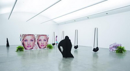 当“Mirrors”和“Chrystal Gallery”的参展艺术家完成了学业转移到其他机构时,他们开始为实体画廊创作那些在虚拟空间里看起来会很不错的作品。在2012年春天,当时还是巴德学院策展研究中心的研究生Agatha Wara在Hessel博物馆为Timur Si-Qin和Katja Novitskova举办了一场双人展。Timur Si-Qin带来了一系列挂在柱子上的Nike包,包的背带都被放到最大的长度;他还带来了两幅完全一样的一个金发模特的脸部双联画,模特的脸沿着垂直轴被“切开”了,强调了轻微的不对称。Katja Novitskova则带来了类似于在商店里摆放的那种硬纸板雕刻,只不过它们描绘的不是明星或垃圾食品的吉祥物,而是热带的鸟类和丛林生物,以及一对不明身份的黑人。如果你熟悉在Timur Si-Qin的新达尔文主义的文章中围绕“后网络艺术”构建的知识背景的话,那么这种奇怪的种族主义联系会显得更加讨厌——Timur Si-Qin用进化生物学来证明了优生学和Nike包的受欢迎程度。其中《Stock Photography as Evolutionary Attractor》(2013)这篇文章将现代资本主义的社会与文化特异性描述成了事物的自然秩序——一种对金钱、权力和皮肤细腻光滑的女性的绝对魅力的着迷。