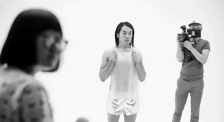 8GG与摄影师在拍摄现场讨论作品《身体控制》的拍摄