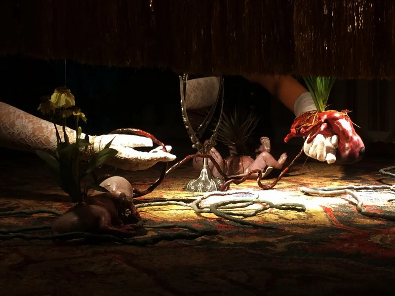 当观众走进展厅时,就好像来到了一个多重时空交错在一起的世界里,仿佛走进了一个自然朴素又充满感伤、梦幻以及对理想生活渴望的浪漫气息之中。观众也成为了作品的一部分,现代社会与原始社会形成了强烈的时空对比与反差,甚至身在其中已无法辨识哪个才是真实的世界。