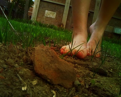 我作为一个女性,对特定的一段时期自己的生活状态的一种 借喻。外界的压力,变化和内在的彷徨无助共同作用导致自己生活的失衡,内心的脆弱,自己一个人一直在寻求一种平衡,就像作品中的我赤脚走在布满石子的青草土地上,顶着酒瓶,小心翼翼的前行,努力的使它保持平衡,自己也不知道结果会如何,只能一步一步走下去,一种状态,证明我活着,活在当下。