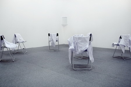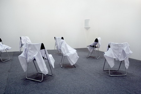2010, male doctor's overall, acryl frame surface, chairs, dimensions variable