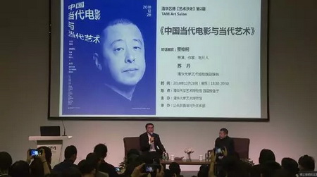 2018年12月28日晚18:30-20:30,清华大学艺术博物馆【艺术沙龙】第2期在四层报告厅举行。本期沙龙邀请著名导演、作家、制片人贾樟柯,与清华大学艺术博物馆副馆长苏丹围绕《中国当代电影与当代艺术》的话题,展开深入而精彩的对话,清华大学校内师生及社会公众500余人参加。对话伊始,苏丹副馆长介绍了贾樟柯导演及其代表性作品,并对在寒冷天气中来到现场的观众致以真诚的感谢。