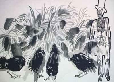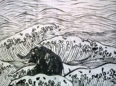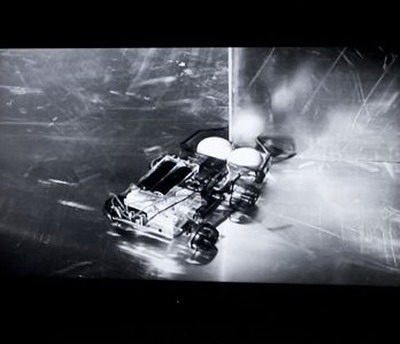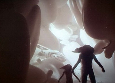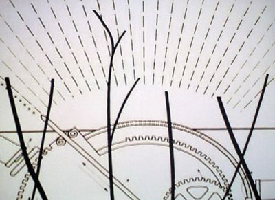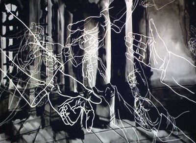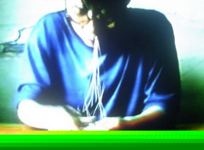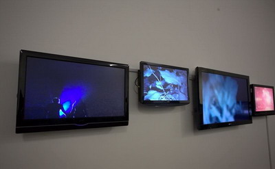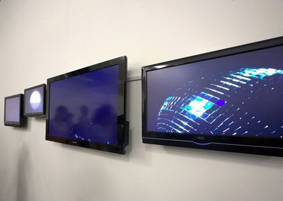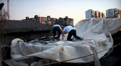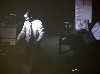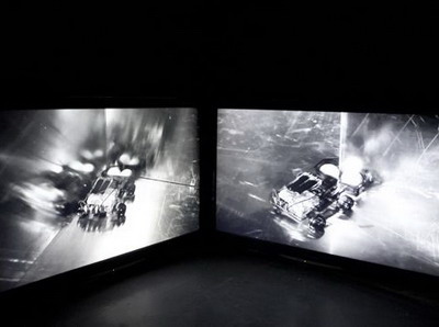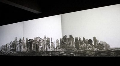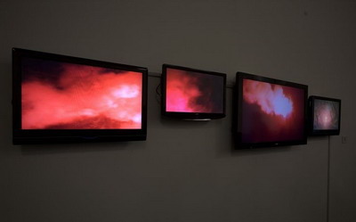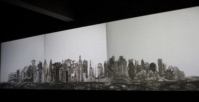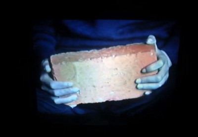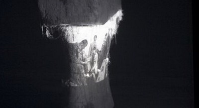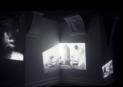 杨福东《八月的二分之一》2011年 八屏录像装置 这部影片的想法源自于立体电影,艺术家使用早期他其他影像的拍摄时的素材,投影到不同的物体上,如建筑废料、旧家具、泡沫板等等,并从不同的角度进行拍摄。