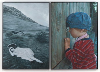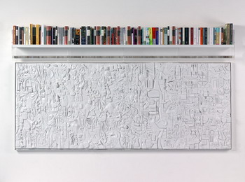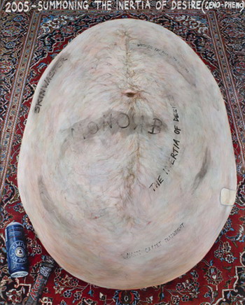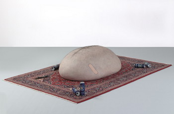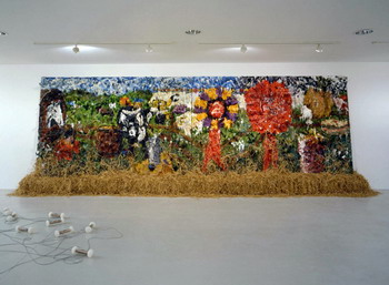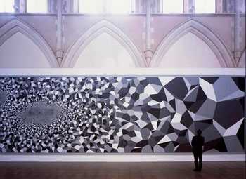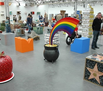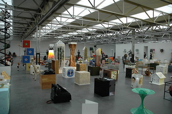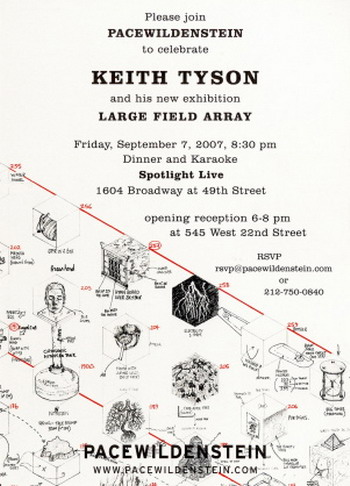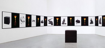 《大场队伍》的内容是300个植入在隐形方形单位里的事物。在展出时,它们会有秩序地标准的排列在展地的空间内。每一个方形内装的都是被公认或具代表性的世界上常见事物的特征,从大众文化到自然历史。这些东西包括美国富豪Donald Trump的结婚蛋糕、骷髅做的椅子、站在卫星盘上的鸟类等等。观众被邀请越过这些看似被任意分类的东西,并对这些观念的图像产生不同的回应。2007年于伦敦佩斯画廊的展出。(上图第一张为展览海报)