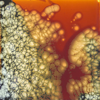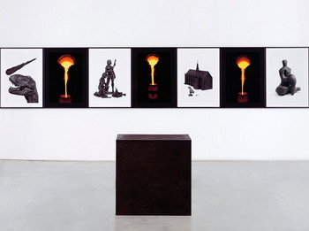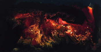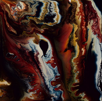 混合的涂料、色素和化学物质将被放置在同一张铝板上产生效应。这些反应将通过地心引力、化学反应、温度、湿度、蒸发作用等因素凑合起来并永远停留在一个状态中产生风景似的自然图像。