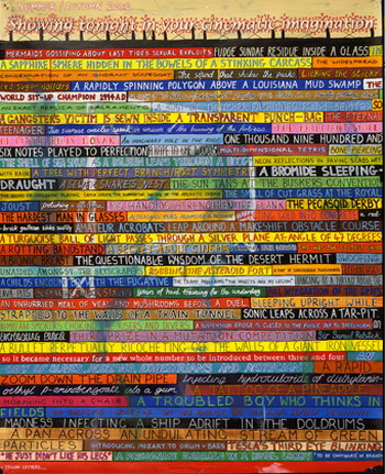 在此系列中的每一幅绘画都拥有相同的49个条纹,轮盘将指示泰森是用红色、青色或黑色的铝粉填上。其中巨大的3幅画的名字来源于世界著名的赌馆,还有的是一些著名历史事件发生地的地名和年代,而另外12张日历作品的每个月份却是每个不同赌馆的名字。