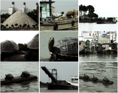 一个关注中国河流的录像,镜头的最初集中在几只正在休息的乌龟,慢慢的移动至河边忙碌的交通和人们身上,河水两边的繁荣以及河中忙碌的船只说明了中国环境正在步入的转变和情境。