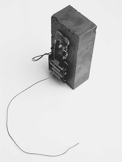 Micro-radio transmitter, brick, dimensions variable. Walker Art Center Public Art Project.