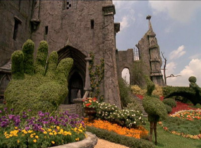 《剪刀手爱德华》情节并没有特别的创新,依然是美女与野兽的童话路线,依然是“异类比常人更具人性”的主题,但蒂姆·波顿孩童般的想象力赋予本片独树一帜的视觉风格。比如爱德华所住的古堡,远看是阴森的黑白色调,走到里面才发现郁郁葱葱,竟是另一片天地。与之形成对比的是小镇上蜡笔画一样的居民别墅,除了片中的布景,那些千奇百怪的发型,一派童趣的园艺,透着圣洁的冰雕,都帮助本片营造出一个远离尘嚣的神奇世界。无怪乎1991年的奥斯卡给了ES最佳化妆的提名,92年的英国学院奖给了最佳服装设计,最佳化妆和最佳视觉效果的提名。
