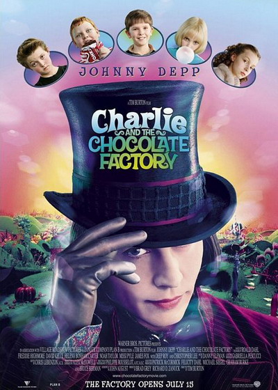 查理和巧克力工厂是根据Roald Dahl的小说改写,Jonny Depp饰演Willy Wonka,Freddie Highmore 饰演Charlie Bucket , Helena Bonham Carter(波顿现任妻子) 饰演查理的母亲, 该作品比起1971年的改编更加接近原著,Willy Wonka和巧克力工厂,虽然一些自由度被剥夺,例如增加了Wonka和他父亲争执的画面,查理和巧克力工厂不久后在奥斯卡最佳服装设计奖中被提名,该影片在国内获得了2.07亿美元的票房。翻译:小平