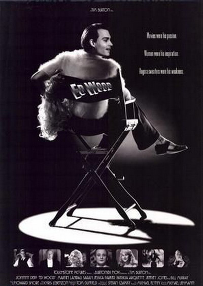 波顿的影片Ed Wood(1994),是部小规模影片,描述了艾德伍德,一位被称为“世上最烂的电影导演”的一生。又是Jonny Depp担当主演,该片向波顿童年看过的的那些低成本科幻和恐怖影片致意。因为在制作圣诞夜惊魂时和Danny Elfman发生了争吵,所以他拒绝签发该片,该片的认准书传递到了Howard Shore手上。虽然该片在发行时遭遇了商业上的失败,但丝毫不影响其在评论界的口碑,同时也聚集了相当大的粉丝群,让人们对于艾德伍德的电影有了新的审视和态度。Matin Landau因其扮演的Béla Lugosi一角获得了奥斯卡最佳男主角奖。翻译:小平