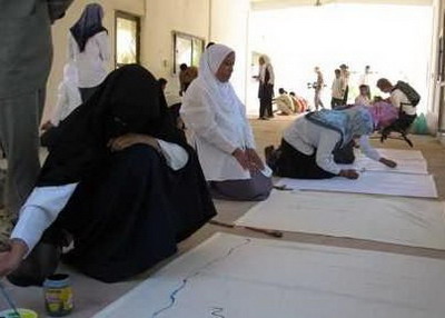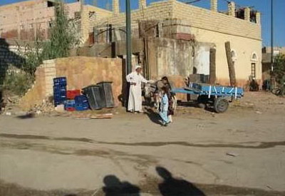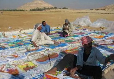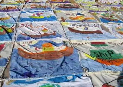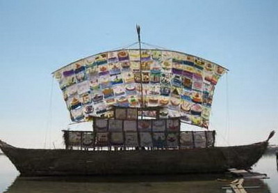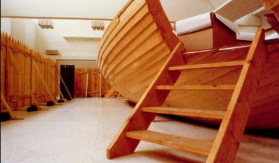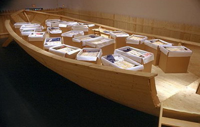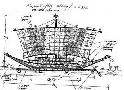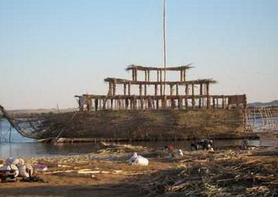 这个作品建造了一个长20米,宽7米,高13米的埃及古船。船帆上的画都是由附近学校里的老师和学生完成。