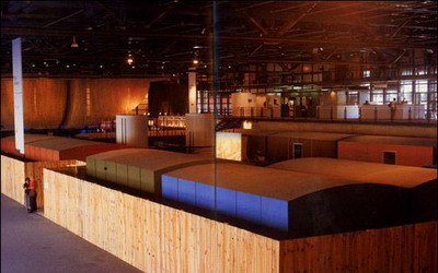 观众由门进入房间,撩开窗帘,才发现自己是站在房顶上。前进的唯一办法,就是穿过无数大大小小的烟囱。