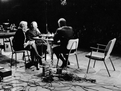 1968年,正在下棋的杜尚和凯奇,另一人为杜尚的妻子Teeny。
