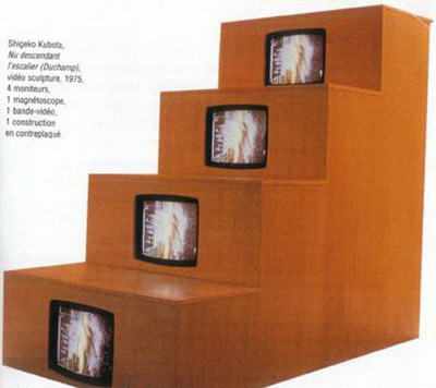 1976年的录像装置,呈现一个正在下楼梯的裸女。