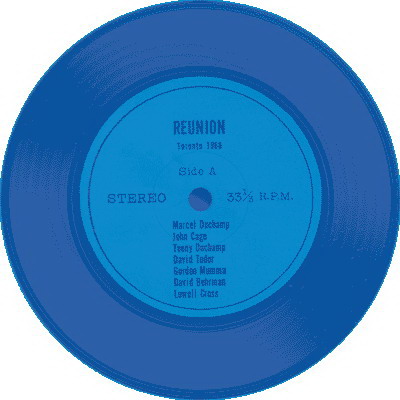 1968年3月5日在多伦多Ryerson Polytechnic剧院由约翰.凯奇举办的“Reunions”演出还邀请了David Tudor、Gordon Mumma和David Behrma等音乐家。现场,凯奇和杜尚参与了Lowell Cross设计的电子棋盘作品,一件每步都会发出随机音乐的互动装置。久田保成子将现场拍摄的照片和后期的资料制作成3件形式不同的作品,一本书、一盘录像和一个录像装置。