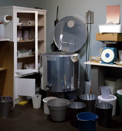 他作品中的形象,主要是室内的景物与陈设的静物。这些形象都是用彩色纸板精心制作的实体模型。他精彩的作品“格罗特 (Grotte) 2006” 据说整整制作了两年的时间。