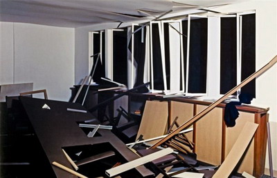 他着意强调这种通过暗指公共的形象,或复制模仿被媒体已广为传播,并且在我们的视觉意识里已经根深蒂固的众所周知的犯罪现场或重大事件的新闻图片的做法与现实之间建立的关系的脆弱性。