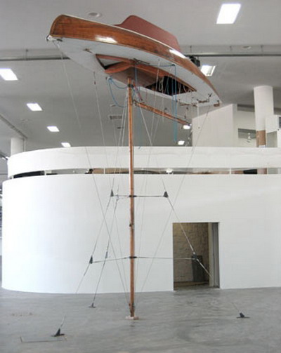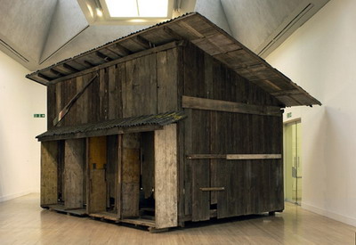 2005年泰納獎得主Simon Starling,在我還未認識他之前朋友跟我提了Shedboatshed,那件木屋變船船變木屋的作品,Simon Starling將一幢木造的老舊小木屋拆解,然後用這些木材造了一艘小木船,將剩下的木頭一同承裝到船上從萊茵河畔往下划,一直划到巴賽爾美術館,將小船拆了,回復這些木材原初建構的破爛小木房。當下耳聞這件作品真他媽讓我有啞口無言的崇拜,爾後透過網路得知其他作品及展覽現場,只能說吳老爺愛死這個藝術家了,因該將這張照片列印表框放在供桌前當精神領袖每日三拜。