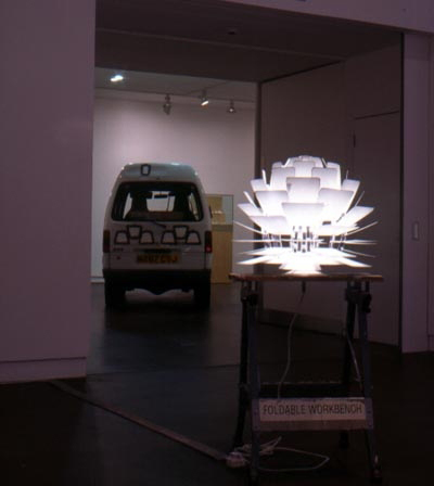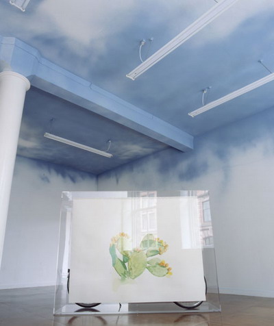 "若要談我的作品,我想算是我觀念思維的具體呈現"Simon Starling 說(類似,詳細如何我也記不得了),我最感興趣的是在它作品裡頭具詩意的物理性轉化進程,Simon Starling的操作手法都再現實的物理層面實踐,但癥結點在於所選擇物件與手法,透過這些元素材料而形構出剛剛所題的"具詩意的轉化過程",就像在完成一件使命,它自己必須通過它所設立的關卡達成目的,自己做遊戲給自己玩,還真的有夠好玩。在泰納獎展覽現場裡還有另一件作品Tabernas Desert Run,透明框架裡置放著一台經改裝過的腳踏車與一張仙人掌水彩畫,文件的背後事件如下:2004年Simon騎著它自己改裝過的腳踏車横渡位於西班亞南部的Tabernas沙漠,而這台改裝腳踏車上有個瓶子承裝著氫氣,在其成過程中裝置會收集空氣中的氧氣,與氫氣作用後產生水,騎了66公里的路程回到工作室,將這些在沙漠中蒐集的水取出,然後用這些水來畫一張漂亮的仙人掌水彩畫。很離奇的一個事件,有點像是一個有層次線性發展過程,無形中了散發出某種優雅的氣質,具詩意又帶點自然主的韻味.......