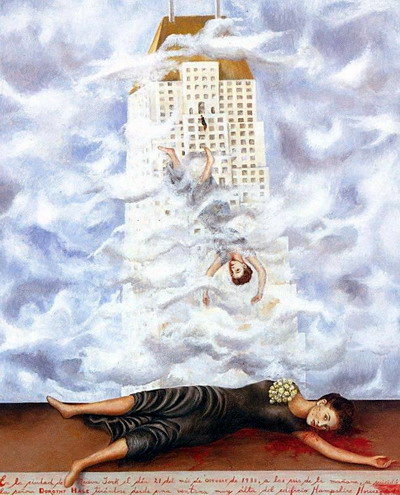 多年以后,她当年的男朋友回忆起来仍是不寒而栗:“剧烈的冲撞撕开了她的衣服。车上有人带着一包金粉……那金粉撒满了她血淋淋的身体。”整整一个月,她浑身打满了石膏,躺在一个棺材一样的盒子里,没有人会相信她会活下来。1926年,在病愈过程中她画了第一张自画像。渐渐地,艺术使她承受的痛苦有了意义,从此她开始以绘画记录自己和生活与情感。弗里达从车祸到亡故的那一天,总共经历了三十二次手术。为了给弗里达作手术,她的父母几乎卖光了所有的家产。