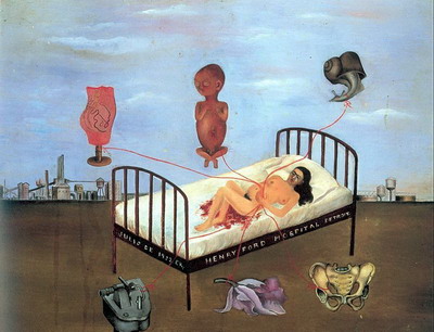 在这一时期,Frida 仅被看作一位伟大画家的迷人陪衬,然而情况很快发生了变化。1932年,Rivera受托为底特律博物馆创作壁画,而在此期间Frida流产了。休养中Frida画了《底特律的流产》,首张真实而敏锐的自画像。她从此发展出来的风格完全不同于她的丈夫,主要从墨西哥民间艺术以及小型祭坛画中汲取营养,而Rivera对此表示理解和尊敬。