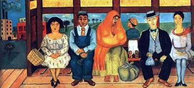 弗里达早期的作品受到狄亚哥的影响,象狄亚哥一样,描绘墨西哥的社会和日常生活。在《公车》(El Camión, 1929)里,各种各样的墨西哥人坐在一起,有印第安人,有钱的白人,还有一个女孩可能是弗里达自己。这辆公车和车祸那天的相似,都有木制地板。画中无处不是弗里达的幽默。背景的酒吧名字是“笑声(La Risa)”;穿蓝色服装的工人不仅戴了领带,而且蓝色衬衫上配的是“白领”。