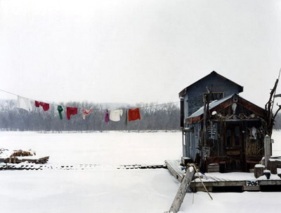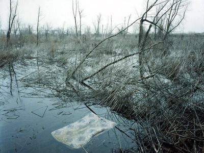 埃里克:我用大幅8X10相机,和柯达彩色负片。这是很贵的,你每按一次快门,就要花去20美元。在技术上,这种相机的景深很有限,所以,我总是需要很多的光,这会难以置信的慢,你不得不把相机放在三脚架上。我在室内拍照,就用工作室式闪光灯。我宁愿不用它,因为它更加延长了拍摄时间,但是,我不得不用。我试想我可以不用闪光灯拍照,但那样我就永远不会得到我如此喜爱的图像的锐度。这批密西西比图片全部都是传统的彩色打印照片。《尼亚加拉》这些图片,我们将负片进行了扫描并制作出数码彩色照片,因为,这样可以使我更好的控制色彩,并且使印出来的照片具有一致的效果。
