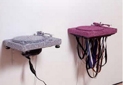 吉姆·兰比对音乐的钟情在他的作品中也有所体现。塑料唱片,DJ的打碟机,宣传海报等等,都成为其作品中随处可见的材料,而每一种材料都可以视为是作品的起点。原始的材料最终都被盖了起来:色彩鲜艳乙烯胶带布置的地板,闪闪发光的打碟器,裹着羊毛,颜料或者胶带的唱片套和海报等。这些熟悉的材料让作品的主题更加鲜明:它们简单的形状被吉姆·兰比精心的布置转变成了心理的空间。