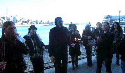 这就像是这样:我住在下东区,刚从荷兰阿姆斯特丹回来,做了这么一件对涅槃乐队主唱科特·柯本致敬的事情。这是一个与日本艺术家的合作。他们做音乐,所以我负责做食品。噢,我还穿了婚纱,拿着百合花和蜡烛。所以它们构成了一个环境,叫做“Feed the Troops”。
