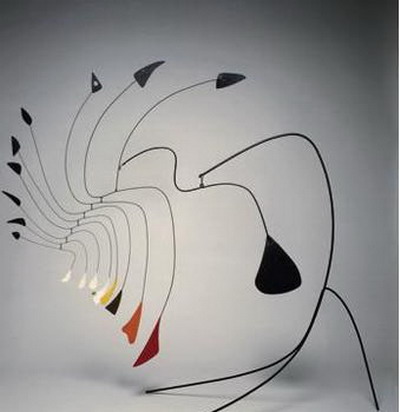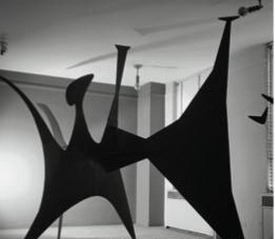 后来,他那在公共场合的大型作品逐渐掩盖了他的其他作品,为他确定了我们所知晓的地位。在大厦和大楼的大厅内,处处可见他的固定雕塑,这些都是相当较晚的创作,和其他的现代大师一样,当城市的大门向卡尔德打开时,他那构思编排的能力就离他远去了。但是1940年的《黑野兽》,还是体现了这些雕塑对于强度密度的驾驭是很厉害的。从某种程度上讲,这原本是件装置作品,1940年在纽约的Pierre Matisse画廊展出。黑色抽象的斜体像恐龙或妖怪一样,没有任何支撑点,向上下叉开,将天花板和地面链接起来,直逼建筑的极限。《黑野兽》既具有时代性,又具有预兆性,Tony Smith的拟人观,更符合当代的口味,但要是没有卡尔德的先例,很难想象会是怎样。对二者之间联系进行思考,也为恢复卡尔德后来的街头声誉打开了一扇门。卡尔德的作品中,似乎有一种现代性,近乎生物形态抽象艺术的《纽约客》卡通版,而这正是现代主义基本的一些特质的背后特征:将多少有些掩饰的世界作为观念上和哲学上的一个平台。卡尔德和他同时代的其他人确实“感觉”到了抽象。所塑造的有机的、充满灵感的形式,在他的作品中逐渐重要起来,确立了他的位置:在创作的长河中,他经历了现代主义思想,世界大战,原子时代的黎明,直到更为现代的时期,此时,这条源泉似乎要干涸了。不过,它起源于一种原始的创作冲动,世界的风云变幻能否在我们的能力(或需要)之上执行它的否决力,我们将拭目以待。