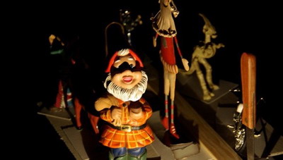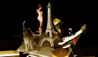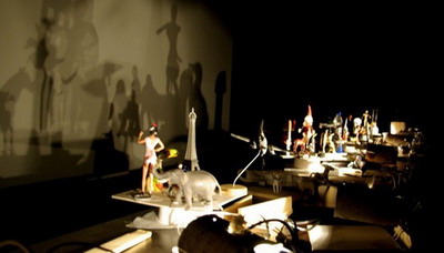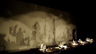 最能够体现费尔德曼的精神世界的作品,大概要属他的最新装置作品“Shadow Play”了。当我们进入到这一空间时,我们能够看到其尽头的那面墙上布满了忽远忽近的、给人以深刻印象的影子。在远端的墙壁和观众之间的部分,放置了正在旋转的桌子,桌子上摆满了玩偶和一些便宜的物品,光从这些东西的后方打过去,以此来产生影子。尽管这样的小把戏是显而易见的,但是仍然能够产生不可思议的效果。费尔德曼说:“它们实际上都只是一堆毫无用处的东西,但是在某一刻,它们在我们的脑海里形成了一种完全不同的东西:那就是墙上的影子。”这样的影子将我们带回到我们的童年,在那个时候,任何一个图像都能够成为我们窥探另一个世界的途径。正如菲尔德曼所说的那样:“艺术是一种过程,一种印象,一种感觉。但它绝不会是一件真正的物品。”