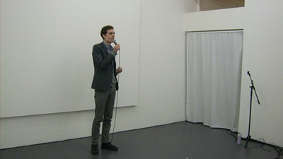 在他近日于PSM画廊进行的表演“Elixir(精髓)”中,Falsnaes将重点放在了作为有改变能力的元素存在的媒体艺术上。“精华”——这正是探索者致力于获得的东西——从本质上来说类似于艺术、文化或是社会的概念性内容的灵感,需要人们积极地参与进去。与集体动态、社会仪式以及介于艺术、娱乐与(政治)行动之间的边界线相关的问题形成了所有的事件。在这场表演中,这些事件用语言表达了艺术的改革能力这一主要问题。