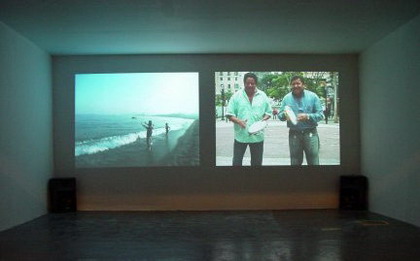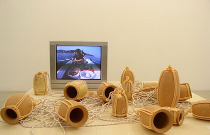 位于岛袋道浩(Shimabuku)作品中心的东西是一种能够使熟悉的东西变得陌生的诀窍。在2006年的表演-影像作品“Asking the Repentistas – Peneira & Sonhador – to Remix My Octopus Works”中,这位艺术家邀请了两位巴西的民间音乐家来阐释自己早期拍摄的在日本捕捞章鱼的录像,而最终成型的作品便是在圣保罗街头进行的一次奇异的“街头表演会话”。