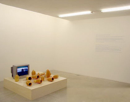 2005年岛袋道浩(Shimabuku)在Air de Paris画廊举办了个展“Catching octopus with self-made ceramic pots”。在这场展览中,岛袋道浩(Shimabuku)展出了一件在意大利Albisola完成的展览同名作品。这是一件带有影像以及由当地手艺人制作的陶瓷壶的装置作品。岛袋道浩(Shimabuku)到Albisola附近的海域钓鱼,正如意大利古时的人们以及艺术家故乡的渔夫所做的那样。这个项目既有趣又富含诗意,模糊了地理与文化之间的界限。在画廊较小的展厅中展出的另一件作品“Untitled”(2003)是一组幻灯片。这是一系列与“Catching octopus with self-made ceramic pots”截然不同的作品,它们展示了一个接一个的脏盘子。艺术家希望看到这件作品的观众能感到自己的饥肠辘辘从而无法对这些图像做任何美学上的评价。在这场展览的新闻稿中,岛袋道浩(Shimabuku)写道:“在Albisola能让我产生一种生在故乡的感觉,因为它和神户一样有海、有山,还有章鱼。当我在餐馆里看到有用章鱼做的菜时,我感到很惊讶。我开始想Albisola的人是怎样捕捉到章鱼的。在我的家乡,人们会用陶瓷来捕捉章鱼。他们只用在一条长绳子上固定好许多罐子,然后让它们沉到海里。整个过程不需要诱饵。当这个陷阱在24到48小时后重新取回时,就可以在罐子里面看到捕捉到的章鱼。这个方法利用来章鱼喜欢狭窄的空间这一习性。为我制作陶罐的手艺人Danilo告诉我意大利人在很久以前也是采用相似的方式。于是他和我决定按照古老的意大利以及我家乡的方式来做一些事,用自己制作的陶罐在今天的Albisola捕捉章鱼。”