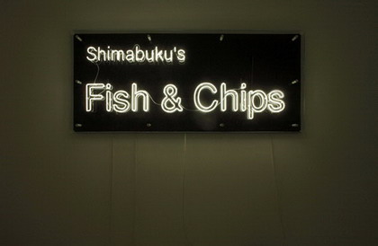 2007年岛袋道浩(Shimabuku)在伦敦Wilkinson画廊举办了个展“Fish & Chips”。展览同名作品“Fish & Chips”(2006)曾在2006年的利物浦双年展以及柏林DAAD画廊展出过。它是在水下拍摄完成的:在深海里,每一只不时游过的鱼似乎都被岛袋道浩(Shimabuku)故意放在自己面前的土豆吃了一惊。在这件作品中,炸鱼薯条这一典型的英国食物被转变成了一种幽默的“字谜”;然而这种明显十分荒谬的“邂逅”却最终促成了对日常生活中平凡的元素的仔细观察。2011年岛袋道浩(Shimabuku)在该画廊举办了他的另一场个展“My Teacher Tortoise”。创作于2011年的展览同名作品“My Teacher Tortoise”是这场展览的焦点。这件作品曾于同年在大阪国家艺术博物馆展出过,它具有岛袋道浩(Shimabuku)尖锐的叙述的典型特征。艺术家本人将这场展览定义为“思考‘停止’的一次机会”。好沉思与睿智通常是寓言中乌龟所具有的特征;而在这场展览的环境里,乌龟也相应地成为了岛袋道浩(Shimabuku)用来暗示“我们应该放慢速度、重新思考我们通常不太关心的对现状的鉴别”的象征物。