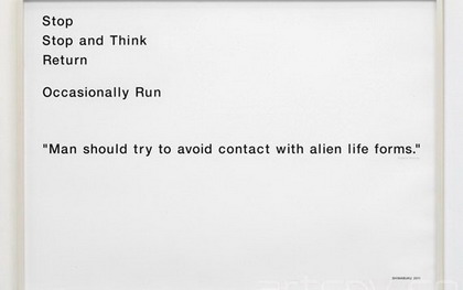 在“On the Water”展览举办期间,岛袋道浩(Shimabuku)的另一场个展“人类应该尝试避免与外星生物体进行联系(Man should try to avoid contact with alien life forms)”也在Vassivière Island国际艺术与景观中心拉开了帷幕。在这场展览里,岛袋道浩(Shimabuku)用一系列的新作补充了他在过去15年里创作的作品选集。整场展览演变成了一种有趣而且生动的体验,而每一件展出作品都触发了一次能够将观众传输到艺术家独特的宇宙之中的眼花缭乱的体验。展览的名字引用自斯蒂芬·霍金对于外星生物将征服和占领地球的担心。而岛袋道浩(Shimabuku)则建议我们不应该担心与我们的生命形态完全不同的生命形态,相反我们应该对生存在我们周围的事物给予最大的关注度。