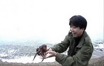 岛袋道浩(Shimabuku)的作品通常与其构想的故事同时呈现出来,揭示了其意外扮演的重要角色。这些作品很有可能像故事那样被讲述给其他人,但它们同时还传达了一幅强有力的画面,将“角色”转变成真正的“形象”。于是艺术家构想了一只总是准时出现在各种情形下的章鱼。在作品“Octopus Road Project”(1991)中,岛袋道浩(Shimabuku)将章鱼放在一台冷却器中,然后带着这台冷却器从濑户内海一直走到了日本海。对这段冒险旅程的记录如同史诗一般,但最后却遭遇了一个悲伤的结局——他的章鱼没能从自己的“旅行条件”中幸存下来。