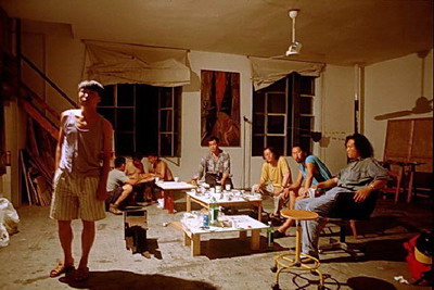 「1993年参加意大利威尼斯国际双年展开放展开幕后,前往开罗旅游并拜访台湾旅居意大利罗马艺术家陈圣颂,没想到在陈圣颂工作室遇到同时参加意大利威尼的大陆艺术家们一起侃大山。由左起,王友身、陈圣颂、徐冰、玉广义、孙良。」 李铭盛1993年拍摄于陈圣颂工作室