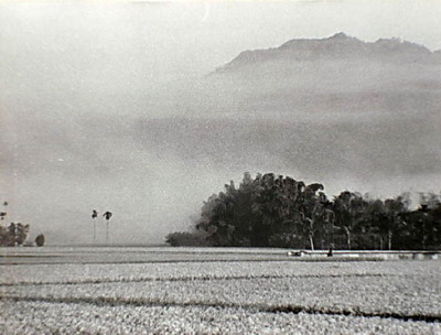 「这是近我家的灌溉水圳,幼年的我在傍晚时分常在这桥边等候母亲从田里工作返家,陪同她一起走回家」 李铭盛1985年拍摄